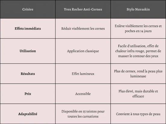 Comparaison de l’anti-cernes Yves Rocher avec Nuvaskin