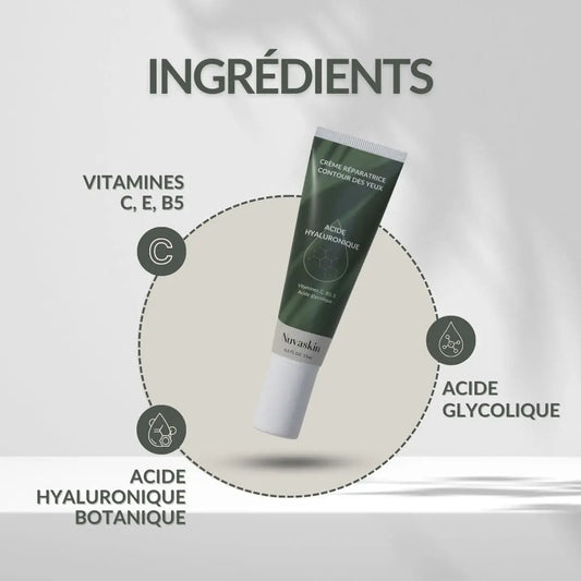 Pour une crème anti-cernes réellement efficace, recherchez des ingrédients puissants et ciblés comme l'acide hyaluronique. Cet actif précieux est conçu spécialement pour le contour des yeux. Il comble les cernes creux en hydratant en profondeur, lissant les rides et illuminant le regard. Grâce à sa capacité à réduire l’opacité de la peau, l'acide hyaluronique révèle un regard éclatant et revitalisé. Choisissez une crème anti-cerne enrichie de cet ingrédient pour un effet rafraîchissant et une peau visiblement rajeunie.